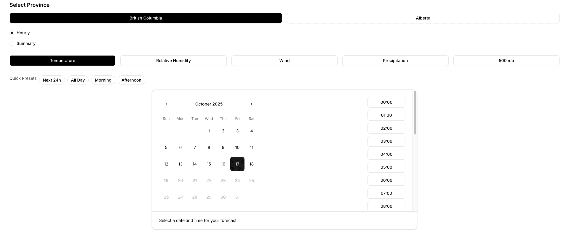 Currently HRDPS only, soon GDPS, RDPS, and US/European models too. Hourly charts, fast downloads, daily summaries, and stable uptime.
